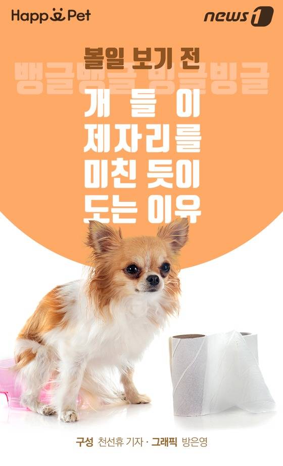 (서울=뉴스1) 천선휴 기자,방은영 디자이너 = 개들이 볼일을 보기 전 보이는 이상한 행동이 한 가지 있다. 바닥의 냄새를 맡으며 제자리를 빙글빙글 도는 행동이다. 보호자들을 헷갈리게 하는 개들의 이상한 이 행동. 왜 개들이 이따금씩 이런 모습을 보이는 건지 그 이유를 알아봤다.