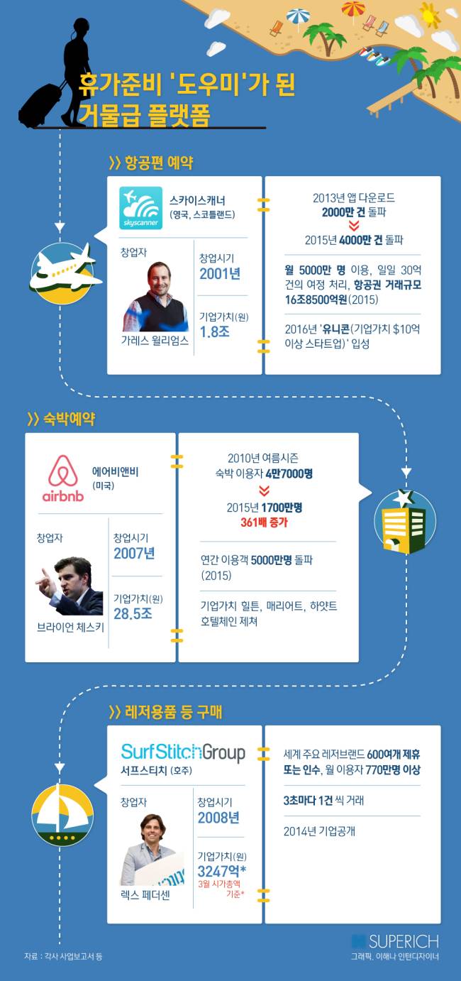 여기, 플랫폼으로 당신의 휴가를 도와줄(?) 신흥 억만장자들이 있다. 우리가 놀고 쉴 준비를 하는 과정마다 그들은 ‘길목’을 쥐고 있다.