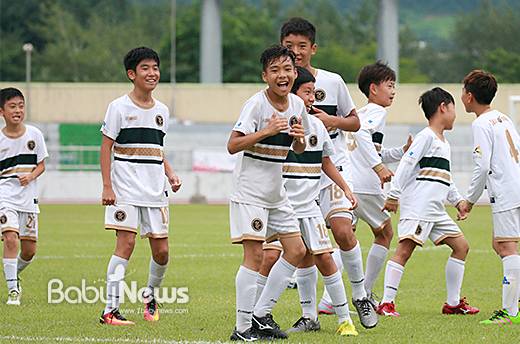 2016 Js cup U-12 국제유소년축구대회 스킬스톰 선수들이 박지성축구클럽과의 결승전에서 2:1로 역전하는 결승골을 터뜨리고 세레모니를 하고 있다.이기태 기자 ⓒ베이비뉴스 |