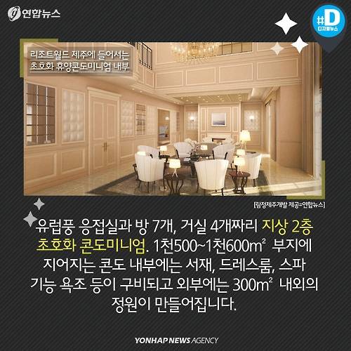 (서울=연합뉴스) 이상서 기자·김지원 작가·김동임 인턴기자 = 유럽풍 응접실과 방 7개, 거실 4개짜리 지상 2층 초호화 콘도미니엄. 1천500~1천600m² 부지에 지어지는 콘도 내부에는 서재, 드레스룸, 스파 기능 욕조 등이 구비되고 외부에는 300m² 내외의 정원이 만들어집니다. 바로 내년 2월말경 제주도 서귀포시 안덕면에 들어서는 콘도 5채 이야기입니다. 분양가는 한 채당 180억원. 세컨드하우스(별장)로는 국내 최고가 수준인 이 콘도는 이미 분양이 완료됐는데요. 초호화, 초고가의 별장을 산 사람들은 모두 중국인이었습니다. 어찌 된 일일까요.