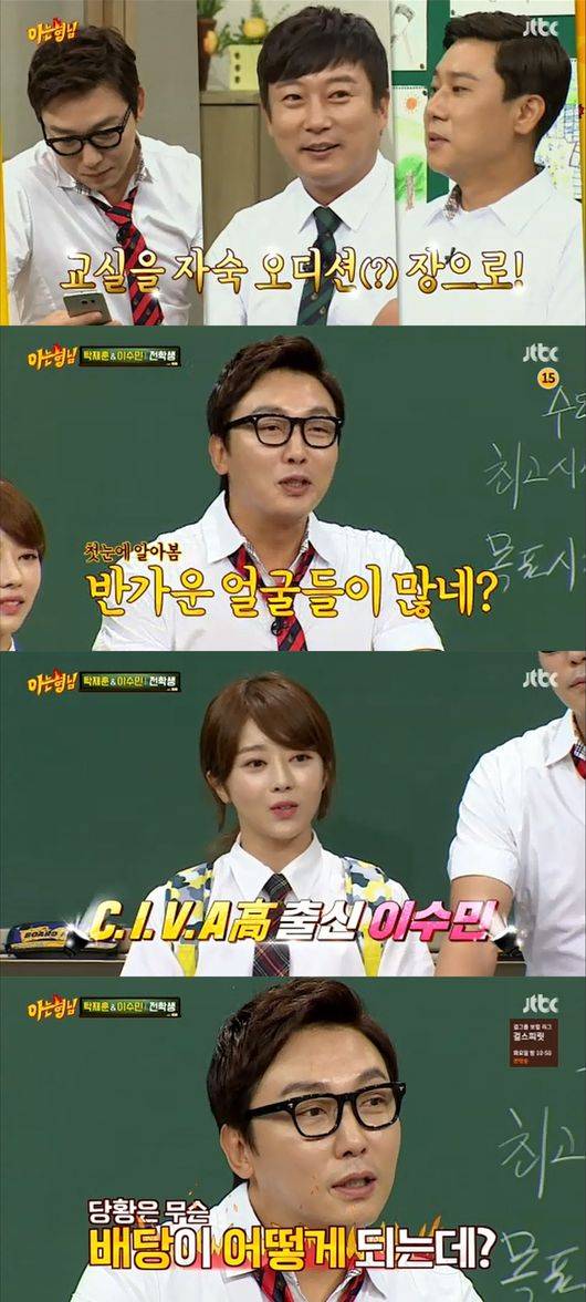 30일 방송된 JTBC '아는 형님'에 탁재훈과 C.I.V.A의 이수민이 전학생으로 출연했다.