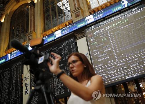 epa05450770 A screen (R) displays a chart with the evolution of index IBEX 35 at Madrid's Stock Exchange Market, Spain, 01 August 2016. The Ibex 35 rose by 0.78 per cent after the start of the trading day reaching 8,653.80 points. EPA/MARISCAL