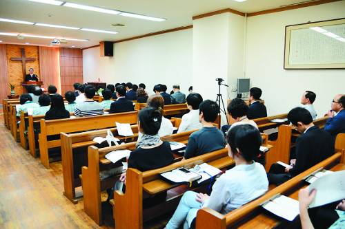 이날 참석자는 60여명. 메시지는 김일승 서울 하늘사랑교회 목사가 ‘세상 사람들의 특징’(창세기 4장 16∼24절)을 주제로 전했다. 현재 지도목사는 박영소 서울 복음전함교회 목사다. 앞서 지형은 성락성결교회 목사가 19년 가까이 헌신했다. 기도회 설교는 한 달에 2회는 지도목사가, 1회는 초청한 외부 목회자가 담당한다.