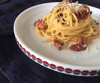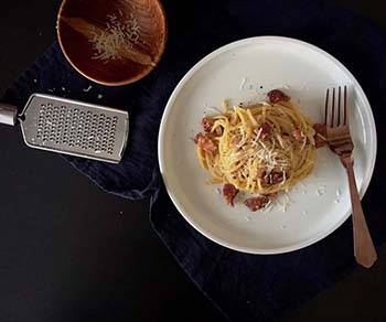 요리포인트 이탈리아의 정통 카르보나라는 달걀 노른자와 페코리노 치즈, 구안치알레나 판체타, 후추로만 맛을 냅니다. 단순하지만 진한 풍미가 일품인 카르보나라를 조리할 때 주의할 점은 달걀 소스를 넣는 타이밍! 꼭 팬을 불에서 내린 후에 소스를 재빨리 섞어주세요. 되직한 소스가 부담스럽다면 달걀 흰자를 약간 섞거나 마지막에 면수를 사용해 농도를 조절합니다.