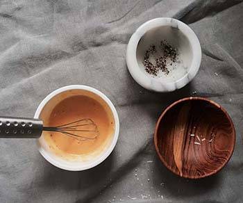 3) 계란 노른자에 곱게 간 치즈와 후추를 듬뿍 넣고 잘 섞어 소스를 완성한다. 되직한 소스가 부담스럽다면 흰자를 조금 섞어도 된다. 소금을 넣은 끊는 물에 스파게티 면을 삶기 시작한다.