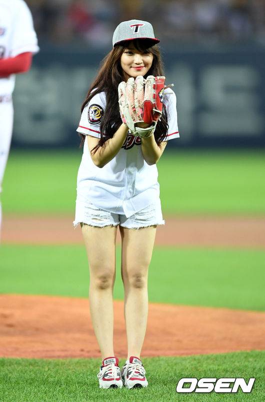 [OSEN=광주, 최규한 기자] 걸그룹 베리어스 소은이 3일 오후 광주-기아 챔피언스필드에서 열린 '2016 타이어뱅크 KBO 리그' KIA 타이거즈와 한화 이글스의 경기에 시구자로 나서 사인을 교환하고 있다. /dreamer@osen.co.kr