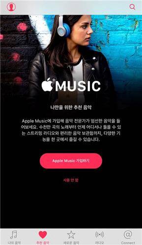 애플이 운영하는 음악 스트리밍 서비스 ‘애플뮤직’이 5일 국내 음원 시장에서 정식 서비스를 시작했다.