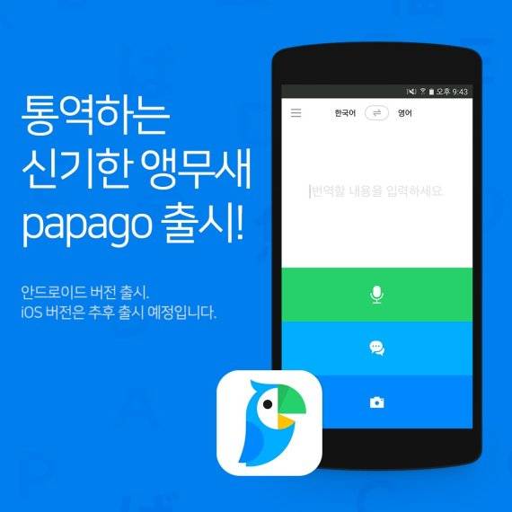 네이버는 “한국어, 일본어, 중국어, 영어 등 4개 국어의 모든 언어 조합을 번역해주는 파파고의 베타 버전을 안드로이드 버전으로 출시한다”고 9일 밝혔다. iOS 버전은 다음 달에 선보일 예정이며, 외국인들의 국내 관광을 위한 통역 필수 앱으로 활용될 수 있도록 품질 고도화에 더욱 집중할 계획이다.