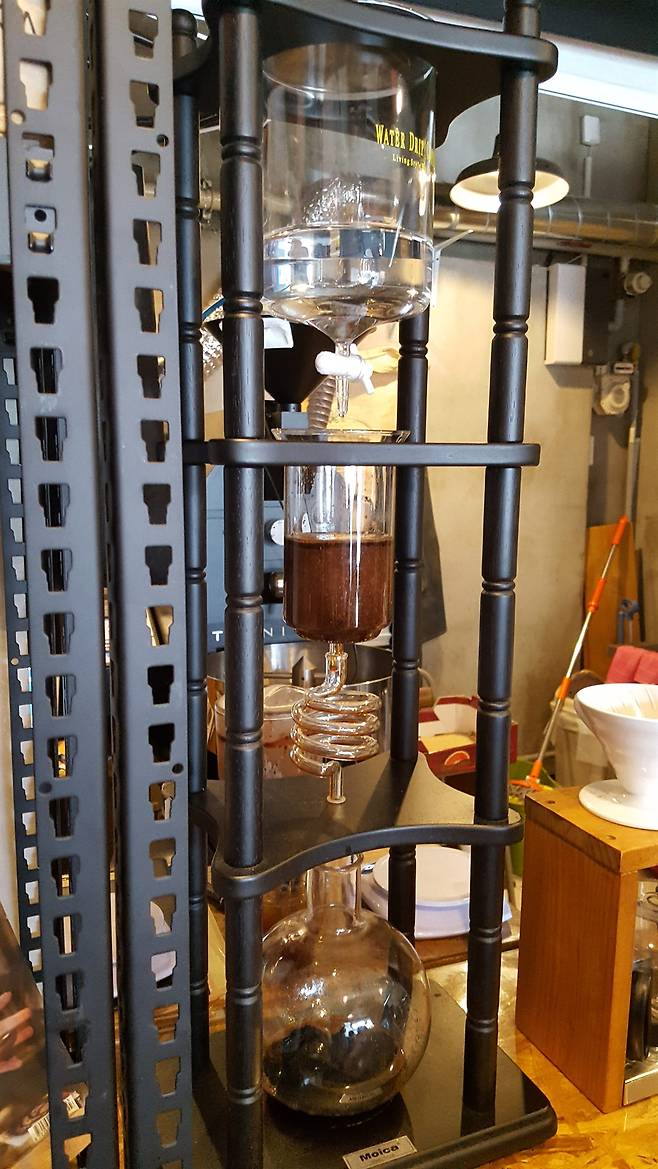 | ▲ 콜드브루 추출 도구 콜드브루는 1~2초에 한 방울씩 찬 물을 떨어뜨려 커피를 추출하는 방식이다. 따라서 추출도구 역시 특별할 수밖에 없다. 이 도구는 일본에서 개발된 것이다. |