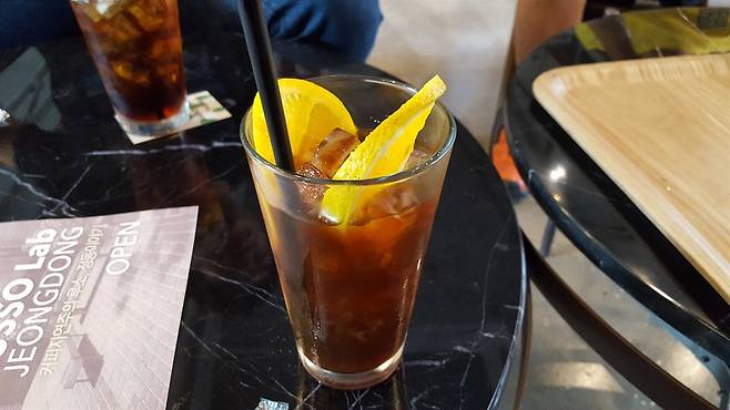 | ▲ '커피 펀치' 핸드드립으로 내린 아이스 커피에 오렌지를 곁들인 달콤한 커피. 해마다 여름철이 되면 카페들은 아이스 메뉴를 주력상품으로 손님들에게 선보인다. |