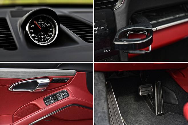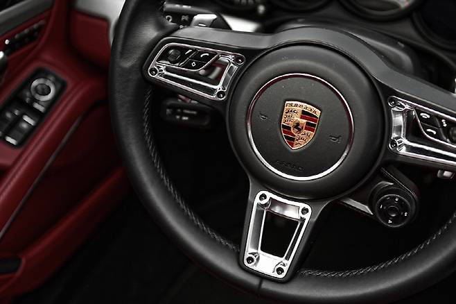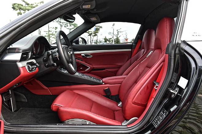 뉴 911 카레라 4S 타르가의 도어를 열면 블랙과 레드 컬러의 강렬한 투톤 조합이 눈길을 끈다. 낮은 차체 덕에 몸을 한껏 숙여 시트에 앉아 도어를 닫는 순간 눈에 들어오는 보스 오디오 엠블럼이 눈에 들어온다. 시트에 몸을 맡기면 우수한 착좌감이 느껴지는데 개인적으로 시트의 높이가 조금 더 낮았으면 하는 느낌이 들었다.