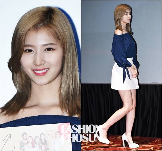 ‘샤샤샤’ 여신 ‘트와이스’ 사나도 실키한 소재의 오스숄더룩으로 보호본능 자극하는 명품 쇄골라인을 뽐냈다. 이날의 스타일링이 미니멀룩에 초점을 맞춘 만큼 쇄골을 노출해 자칫 밋밋해 보일 수 있는 스타일링에 포인트를 줬다.
