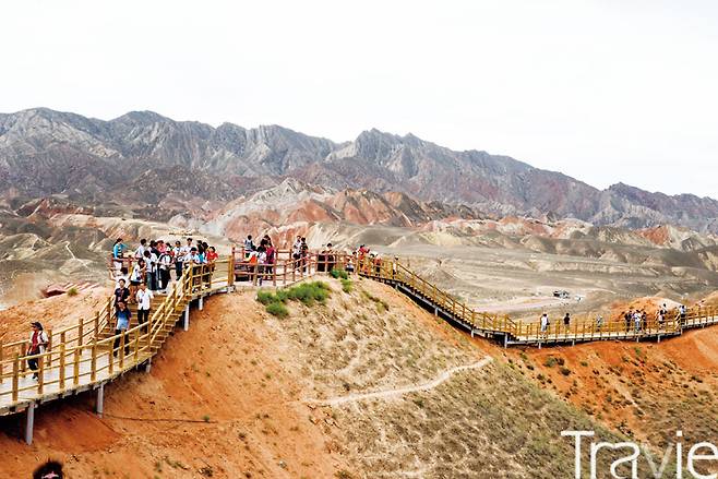 이렇게 아름다운데, 불과 얼마 전부터 유명세를 탔단다. 한 사진가가 칠채산의 일몰 풍경을 촬영해 사진전에 출품했는데, 풍광의 아름다움이 지나쳐 합성 시비가 일었다. 이후 사진작가들이 하나둘씩 모여들었고 사진을 본 사람들이 뒤를 이었으며 2006년, 중국 정부가 여행 관광지로 공식 승인하면서 지금에 이르렀다.