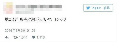 그는 지난 3일 자신의 소셜 미디어에 "여름 코믹 마켓에 팔수 있으면 좋겠다"는 글과 함께 이 티셔츠 사진을 올렸다.