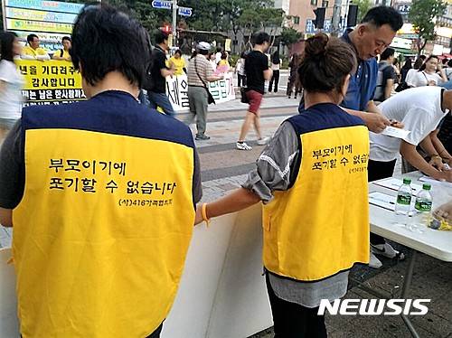 전씨는 "아이들이 귀가했던 시간을 생각해 오후 6시부터 서명운동을 한다"며 "정부가 특조위 활동을 무력화시키고 있는 현 시점에 서명운동과 촛불문화제 등 시민들의 힘이 모여 어려움을 극복하고 진상규명을 이룰 수 있기를 바란다"고 강조했다.