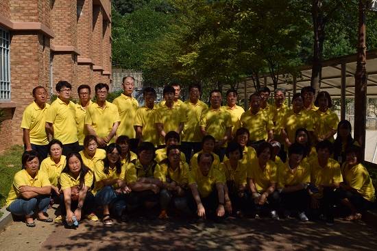 | ▲ “우리는 영원한 2학년 7반” 단원고 2학년 7반 엄마아빠들이 유품을 정리한 후 수학여행을 떠나기 전 아이들이 단체사진을 찍은 벚꽃나무 아래에서 단체사진을 찍고 있다. |