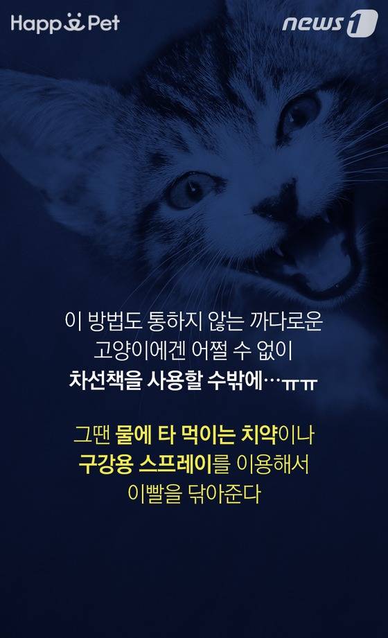 (서울=뉴스1) 천선휴 기자,방은영 디자이너 = 전문가들은 고양이 이빨을 잘 관리해야 고양이 건강을 챙길 수 있다고 강조한다. 하지만 '집사'들은 대부분 고양이 이빨을 잘 관리하는 게 얼마나 중요한지 모른다.