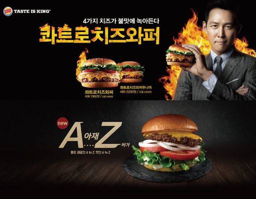 버거킹 콰트로치즈와퍼(위)와 롯데리아 AZ버거(아래). <사진 : 버거킹, 롯데리아>