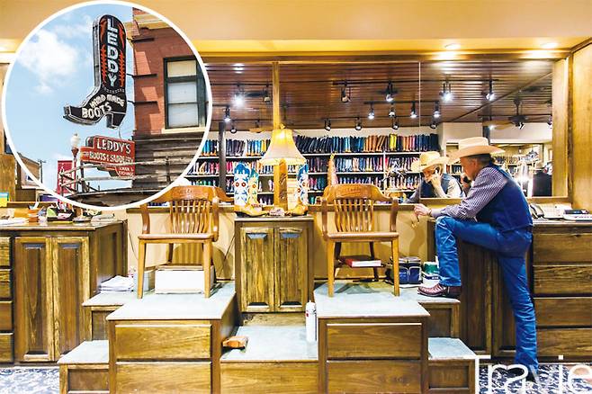 카우보이 패션의 완성은 화려한 부츠. 1922년부터 부츠를 만들기 시작했다는 레디스(M.L. Leddy’s Boot & Saddlery)에 들어갔다. 신세계가 펼쳐졌다. 알록달록한 바케로 부츠(카우보이 부츠)가 도서관 장서처럼 빼곡히 꽂혀 있었다.