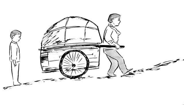 나는 아버지의 리어카를 뒤에서 밀고 있었다. 아버지는 동네 언덕길을 힘겹게 오르고 있는 중이었다. 그때 마침 학교 친구들이 내 모습을 봤다. 나를 처음 발견한 친구 옆에 섰던 녀석이 말했다.