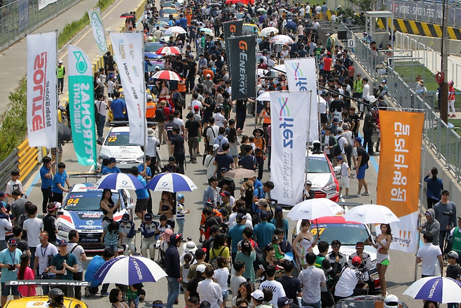 그리드는 경주차가 스타트 하는 공간입니다. 바닥에는 순위별로 지정된 위치가 있으며 스타트할 때 지정된 위치를 사용해야 합니다. 레이스 이벤트 중에 그리드 워크는 그리드가 일반 관람객들에게 개방되는 이벤트로 가장 인기가 높습니다. 경주차와 선수들을 가장 가까이에서 볼 수 있으며 실제 레이스가 열리는 서킷을 직접 출입할 수 있기 때문입니다. 사진은 KSF 2라운드인 송도 스트리트 서킷 경기의 그리드 워크 때입니다.