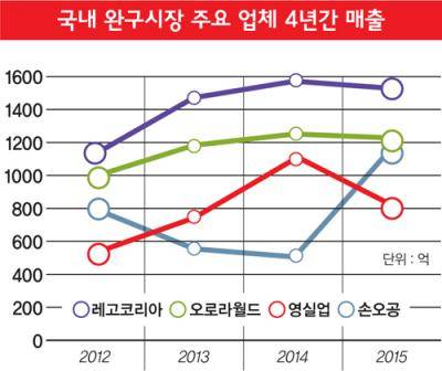 국내 완구시장 규모는 지난해 기준 약 1조2000억원이다. 국내업체 중에서는 손오공과 영실업, 오로라월드 등이 매출을 주도했으며 해외업체로는 반다이, 레고, 하즈브로 등이 높은 매출을 기록했다. 이외에도 모형완구, 피규어, 미니카, 장난감 소총 등을 제작하는 영세업체까지 더해 국내 완구시장은 새로운 부흥기를 맞았다.