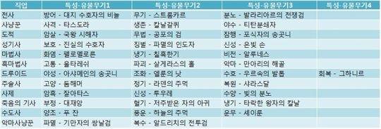 그 중에서도 유물 무기를 업그레이드해 얻을 수 있는 '유물 무기 특성'은 캐릭터의 역량을 확 끌어올린다. 생존기술의 재사용 대기 시간을 25%나 단축시킨다거나 채널링 스킬을 이동하며 사용할 수 있는 등 플레이 패턴의 변화까지 불러올 수 있을 정도로 엄청난 능력을 가지고 있다.
