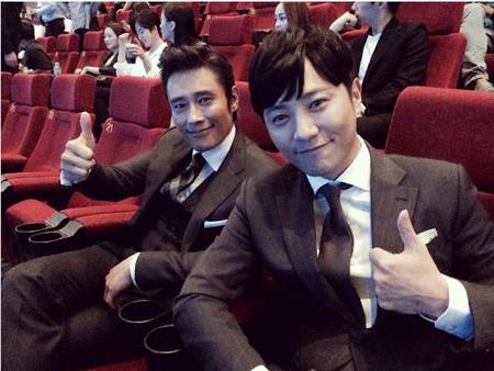 [스포츠서울 이용수기자] 배우 이병헌과 사진을 함께 찍은 배우 진구의 모습이 눈길을 끈다.