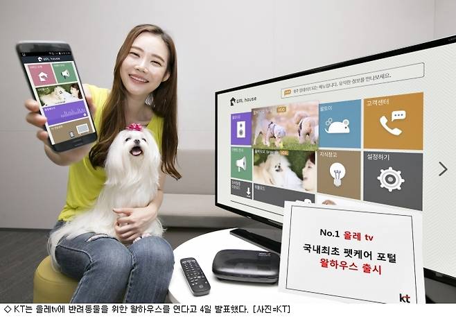 [민혜정기자] KT는 IPTV서비스인 올레 tv를 통해 반려동물을 위한 펫 케어 포털 '왈하우스' 서비스를 출시한다고 4일 발표했다.