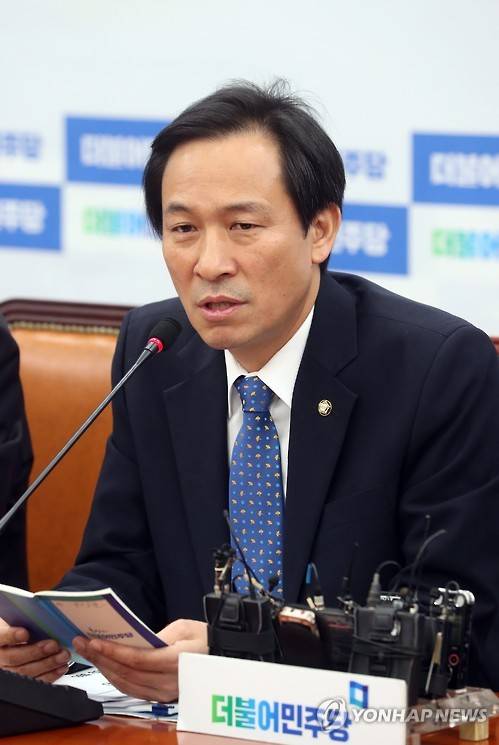 (서울=연합뉴스) 이광빈 서혜림 기자 = 더불어민주당 우상호 원내대표는 6일 최근 부장검사의 '스폰서 의혹' 사건과 관련, "검찰개혁의 목표는 검찰을 괴롭히려는 것이 아니라 공정한 사법권 행사와 사법권 정의 차원에서 접근하는 문제"라며 "이제 공직자비리수사처 신설은 더 이상 미룰 수 없는 과제"라고 말했다.