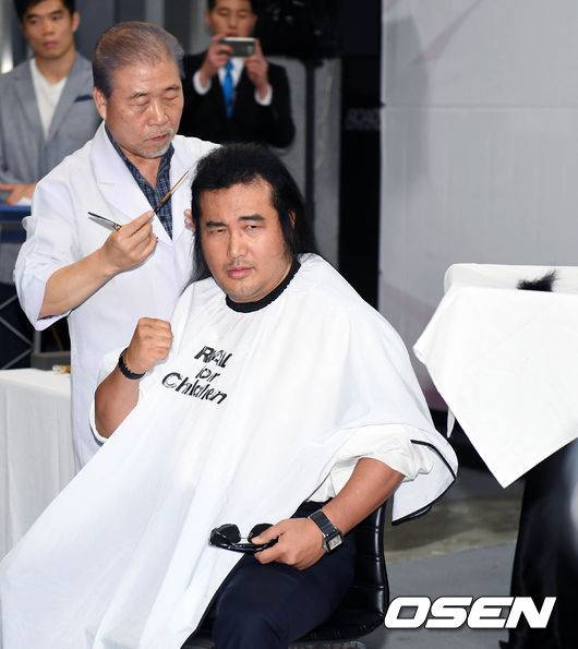 [OSEN=이동해 기자] 영화배우 김보성이 6일 서울 압구정 로드FC짐에서 진행된 ROAD FC 데뷔전 및 소아암 환자를 돕기 위한 모발 기부식에 참석하고 있다. / eastsea@osen.co.kr