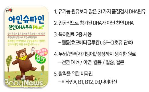 베이비뉴스는 엄마들의 현명한 출산, 육아 용품 구매를 돕기 위해 제품의 상세한 정보를 알 수 있는 ‘맘스리뷰’를 운영하고 있다. 이번 맘스리뷰에서는 아이 건강을 위해 세심히 설계된 ‘아인슈타인 천연 DHA 우유 PLUS'에 대해 알아봤다.