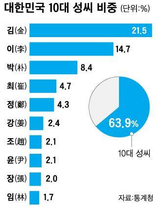 우리나라 성씨는 5,582개.. 김씨는 1,000만명 돌파