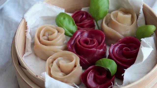 진짜 장미만큼 화사하고, 여느 만두보다 맛있는 오늘의 레시피! 비트로 곱게 색을 내고, 예쁘게 돌돌 말아 만든 장미 만두예요. 만두는 만드는 사람의 개성이 드러나 재미난 음식 중 하나인데요. 가족들이 함께 모여 만들어도 좋을 것 같아요. 식탁 위에 핀 장미 만두, 예쁘게 즐겨보세요!
