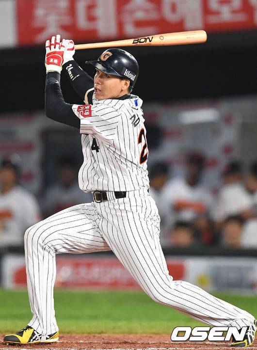 [OSEN=부산, 곽영래 기자] 8일 오후 부산광역시 사직야구장에서 열린 '2016 타이어뱅크 KBO 리그' 롯데 자이언츠스와 삼성 라이온즈의 경기, 5회말 1사 2,3루 롯데 김문호가 2타점 적시타를 때리고 있다./ youngrae@osen.co.kr