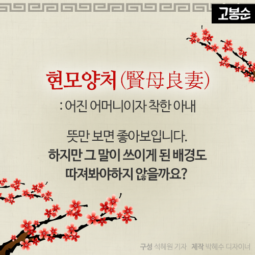 우리의 전통적 여성관으로 인식돼온 '현모양처', 그 뿌리를 알아봅니다.