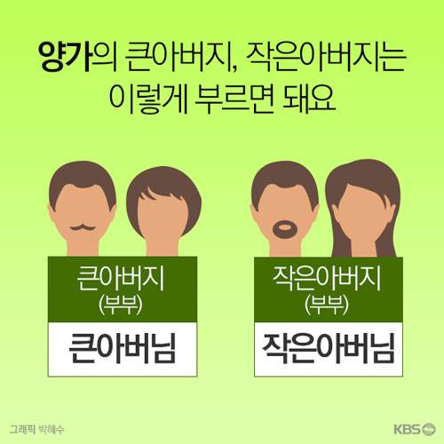 양가의 큰 아버지나 외할아버지, 외할머니 등의 기타 친인척에 대한 호칭으로 상식적으로 판단해 부르면 된다.