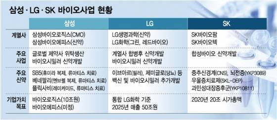 국내 대표기업인 삼성과 LG, SK그룹이 제약 및 바이오 산업을 차세대 성장동력으로 지목하고 집중적인 육성에 나섰다. 2차 산업군에 속한 제조업으로 성장을 이룬 국내 대기업들이 첨단기술과 의료서비스가 융복합돼 후발 경쟁자들의 진입이 어려운 바이오 시장에 적극적으로 뛰어든 것이다.