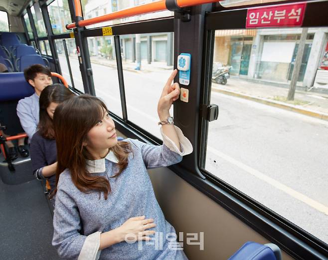이 버스벨이 설치된 버스에서는 임산부 전용석에 부착된 버스벨을 누르면 ‘딩동’ 벨소리와 함께 버스 기사석에 설치된 표시등에 불이 들어와 임산부 하차를 알려준다