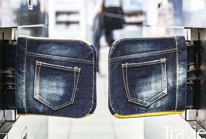 청바지가 크게 프린트된 계단을 내려가 청바지 뒷주머니 모양의 개찰구를 통과하니, 청색 커튼을 달아 놓은 유리창 안으로 청 셔츠를 입은 역무원들이 업무를 보고 있었다. 모든 것이 청색인 그곳의 풍경은 아주 오랫동안 그래 왔던 것처럼 자연스러웠다.