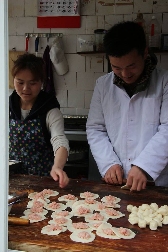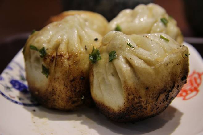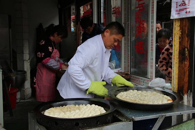 옆집에선 지글지글 셩젠바오(生煎包)를 튀기고 있었다. 셩젠바오는 상하이의 명물 군만두로, 두터운 만두피 안에 돼지고기 또는 새우 소가 들어있다. 납작하고 큰 솥에 기름을 자박하게 붓고 굽는 동시에 찌는데, 덕분에 겉은 바삭하고 속은 푹 익는다. 이 가게의 셩젠바오는 동네 주민에게도 폭발적인 인기인 모양이었다. 큰 솥에 담긴 셩젠바오가 다 팔리면 한 차례 다시 구울 때까지 5분은 기다려야 했다. 그렇게 몇 번이나 눈앞에서 ‘완판’을 지켜본 뒤에야 내 차례가 코앞에 다가왔다. 그런데 앞의 앞 아주머니가 솥에 있던 여남은 셩젠바오를 깡그리 쓸어 담았다. 그 모습을 본 내 앞의 아주머니가 불 같이 화를 냈다. 나도 덩달아 얄미운 마음이 들었다. 저 군침 도는 소리를 들으며 공연히 5분을 더 기다려야했으니 말이다. 그렇게 맛본 닝허루의 셩젠바오는 유명 체인점에서 먹은 것보다 10배는 더 맛있었다.