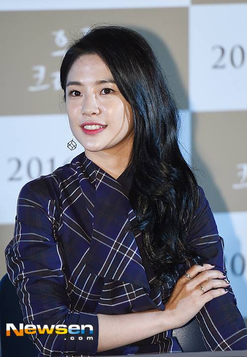 이날 윤소미가 기자회견에 응하고 있다.