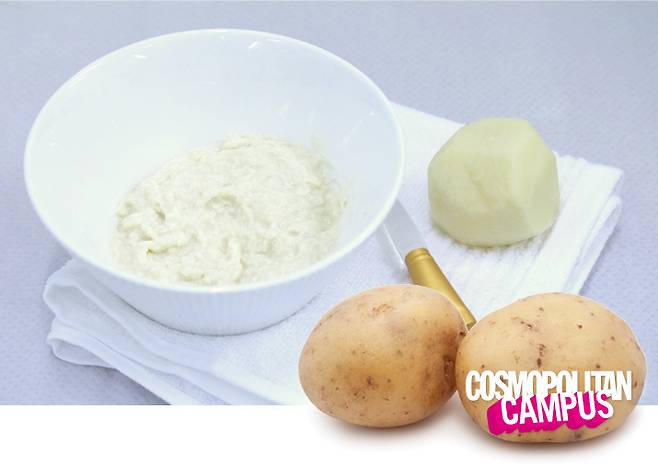 울긋불긋 그을린 피부에 감자팩가을볕 만만하게 봤단 큰 코 다친다. 앞으로 있을 체육대회, 엠티, 그리고 축제까지, 맘 놓고 놀다가는 본인도 모르는 새 까맣게 타고 말 터. 이럴 땐 냉장고 속 감자의 도움을 받자. 특히 감자의 전분과 비타민 C 성분에는 미백 효과가 있어 뽀얀 피부로 거듭나기에 딱 이다. 단, 독성 때문에 피부에 자극이 될 수 있으니 감자 싹과 껍질은 말끔하게 제거한 뒤 사용해야 한다. How to make 감자를 강판에 갈아 즙을 낸 후 밀가루와 1:1로 섞어 걸쭉하게 만든다. Tip 저자극 팩을 원한다면 유기농 밀가루를, 수분 및 영양 효과를 배로 보고 싶다면 곡물파우더를 사용하면 된다.