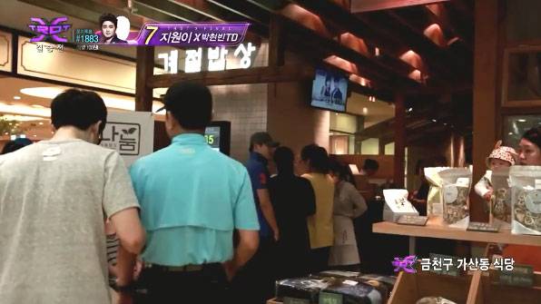 한 음악 프로그램. 두 출연자가 다정하게 이야기를 나누며 밥을 먹으러 갑니다.