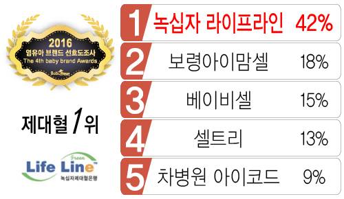 베이비뉴스가 지난 6월부터 8월까지 서울, 경기 등에서 열린 맘스클래스와 베이비뉴스 네이버포스트를 통해 임산부·육아맘 총 2150명을 대상으로 '영유아 브랜드 선호도 조사'를 실시한 결과 제대혈 브랜드 부문에서 녹십자 라이프라인이 42%의 압도적인 지지를 얻어 1위를 차지했다.