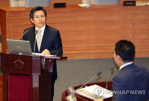 (서울=연합뉴스) 홍정규 기자 = 황교안 국무총리는 22일 국회 대정부질문 답변에서 미르·K스포츠재단 설립과 '비선 실세'의 존재 여부를 둘러싼 의혹에 정면으로 반박했다.