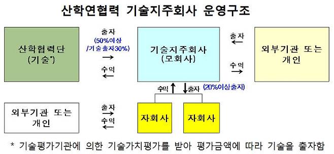 교육부는 하반기 중 `산업교육진흥 및 산학연협력촉진에 관한 법률`을 개정해 현행 지주회사의 사업화 범위를 공학 중심 기술에서 예술·콘텐츠 기반 지식재산분야로 확대하고 내년부터는 `대학 창업펀드`를 조성해 대학기술지주회사가 펀드운용사로 역할할 수 있도록 지원할 계획이다.