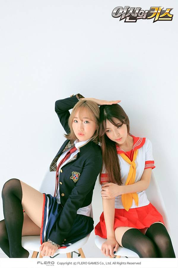 이번에 공개된 화보 이미지는 게임 속 미소녀 캐릭터 '에밀리 윈저'와 '하나자와 레나'의 콘셉트로 모델 랑랑과 이지니가 참여했다. '에밀리 윈저'와 '하나자와 레나'는 '여신의 키스' 메인 파일럿으로 시나리오 상으로 맹활약을 펼치는 주요 인물들이다. 모델들은 게임 속 미소녀 캐릭터의 콘셉트 의상을 착용하고 다양한 표정연기를 선보였다.