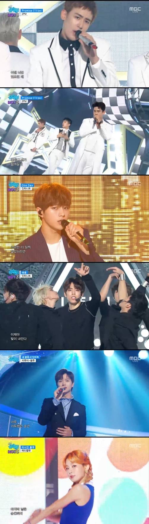2PM은 신곡 'PROMISE'로 컴백 무대를 선보였다. 화이트 수트를 입고 무대에 오른 2PM은 부드럽지만 강렬한 퍼포먼스로 남성적인 매력을 뽐내 호응을 받았다.