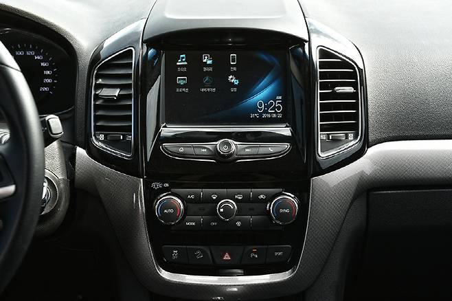 2016 캡티바는 토스카, 윈스톰의 느낌이 강한 컨트롤 패널을 사용했던 기존의 캡티바와 달리 ‘마이링크’ 전용 센터페시아를 탑재했다. 이를 통해 센터페시아의 이미지를 대폭 개선할 수 있었고, 최근 쉐보레가 선보이고 있는 간결한 이미지를 더할 수 있었다. 하지만 대시보드의 이미지는 기존의 캡티바와 큰 차이가 없기 때문에 ‘시간의 흔적’을 느낄 수 밖에 없다.